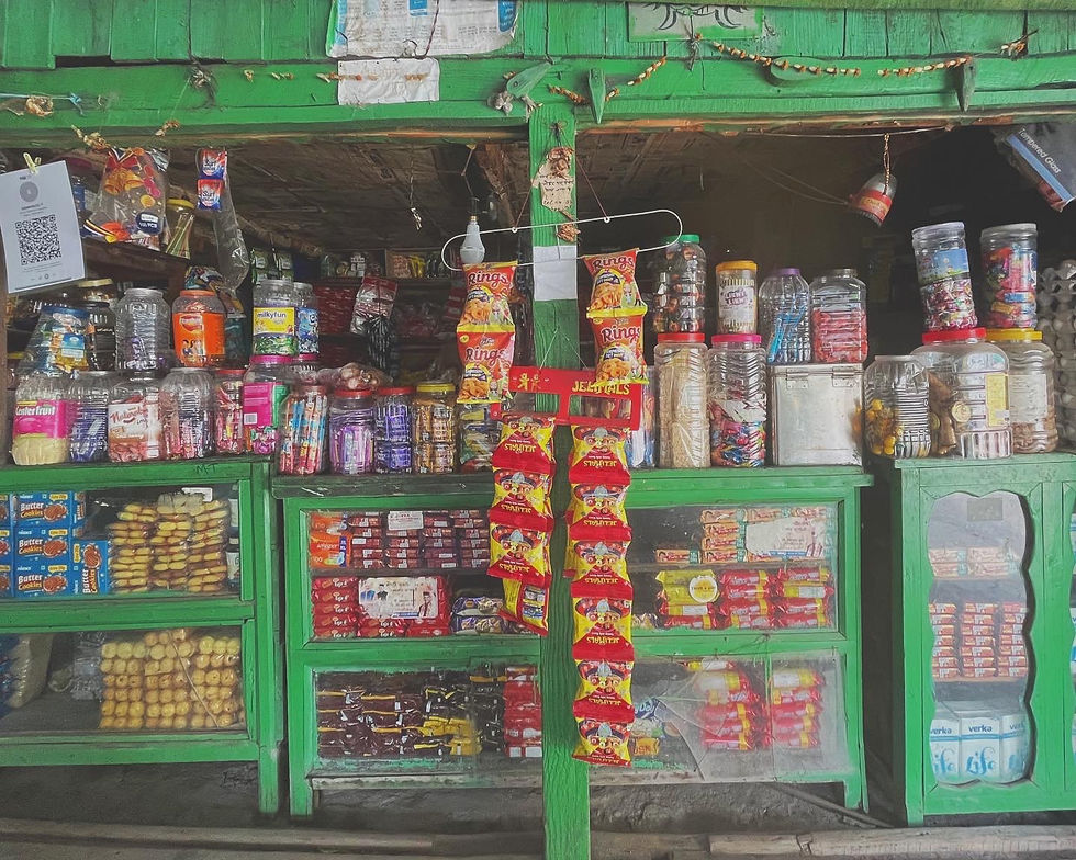 Local Store (150m away): Sells basic groceries such as biscuits, milk, bread, and snacks.